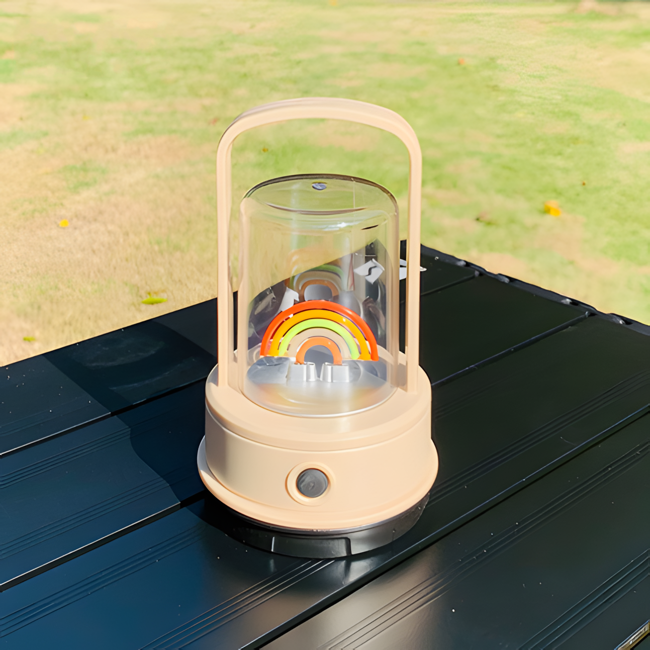 Компактні габарити висотою 14 сантиметрів та діаметром основи 7.5 сантиметрів забезпечують максимальну зручність транспортування у рюкзаку. Прозорий захисний ковпак забезпечує рівномірне розсіювання світлового потоку на повні 360 градусів навколо приладу. Стійка пластикова основа з матеріалу ABS гарантує надійну стабільність розміщення на будь-якій горизонтальній поверхні. Бежевий колір корпусу з декоративним райдужним елементом додає естетичної привабливості практичній функціональності сучасного освітлювального обладнання для активного туризму та кемпінгу.