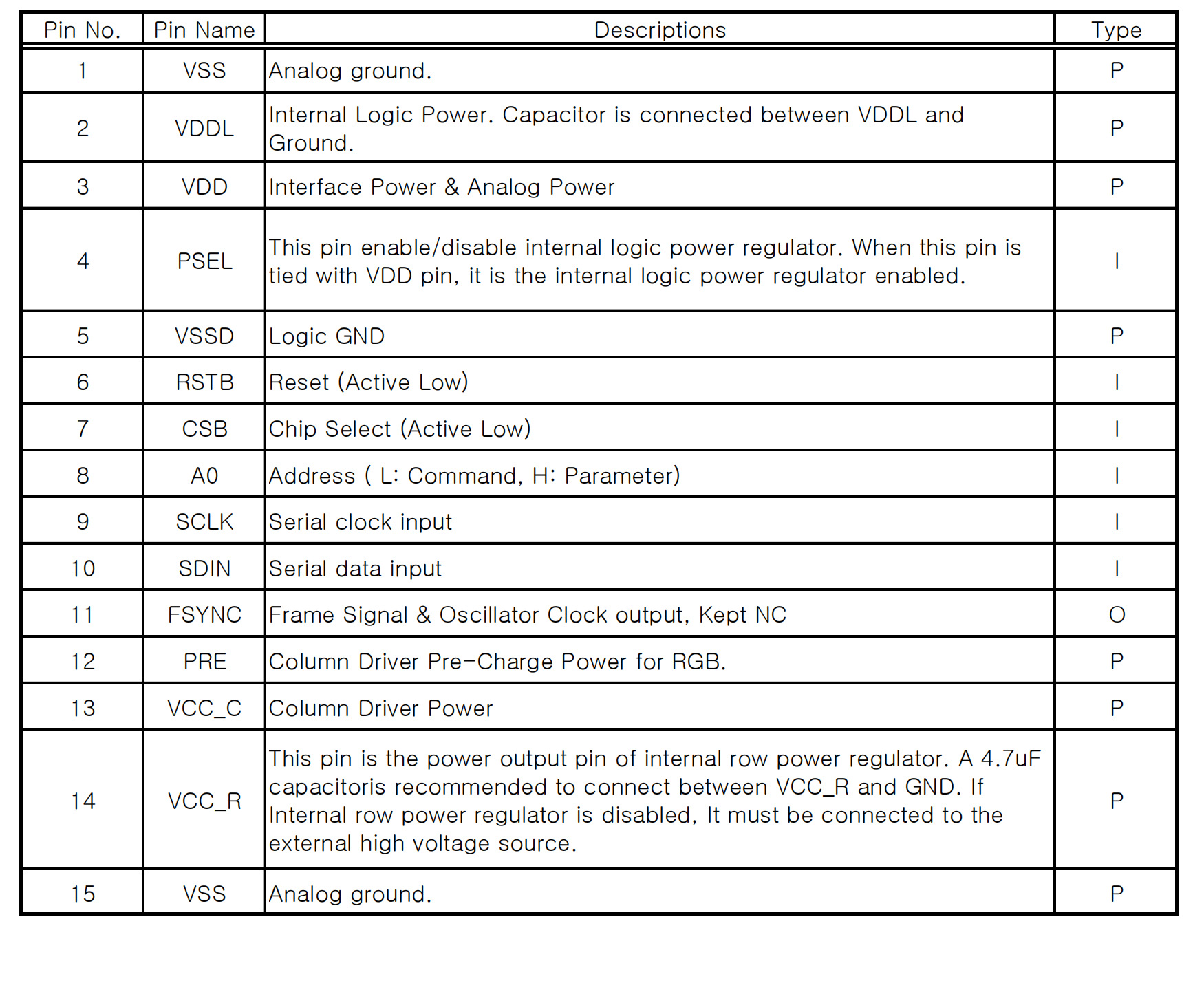 | Інтерфейс | 15-pin COF, Serial (SCLK, SDIN) |