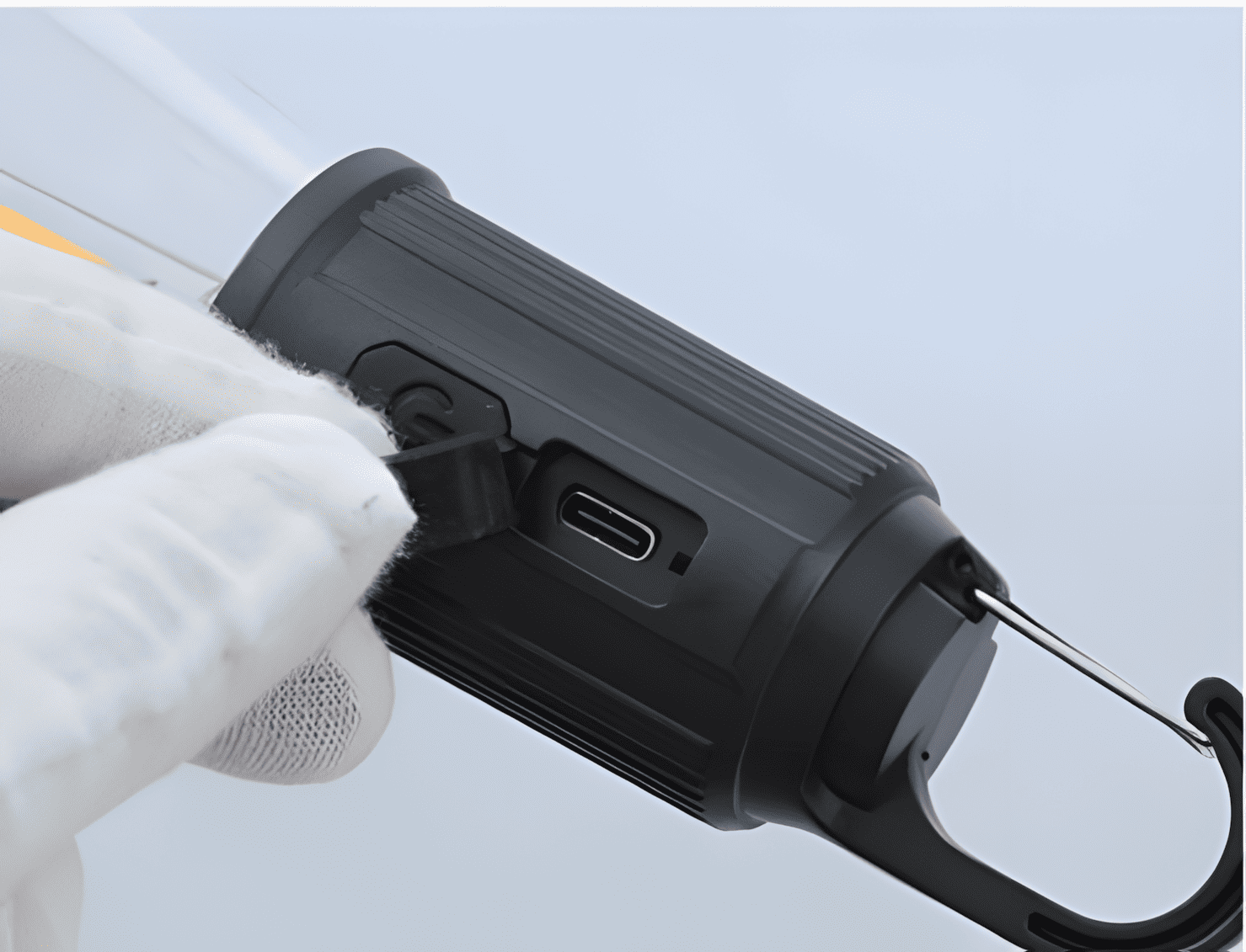 Вбудований карабін дозволяє легко підвішувати лампу у зручному місці. Компактний розмір і мала вага ідеальні для транспортування у рюкзаку. Зручна швидка зарядка через USB Type-C підкреслює сучасність виробу.